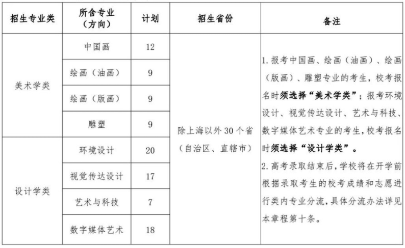 美术学(美术史论)专业认同并使用各省份美术学和设计学类统考成绩,不再举行校考。