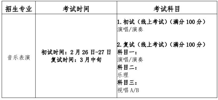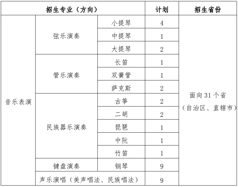 报考专业方向——音乐表演专业中的管乐演奏方向、民族器乐演奏方向和声乐演唱方向。