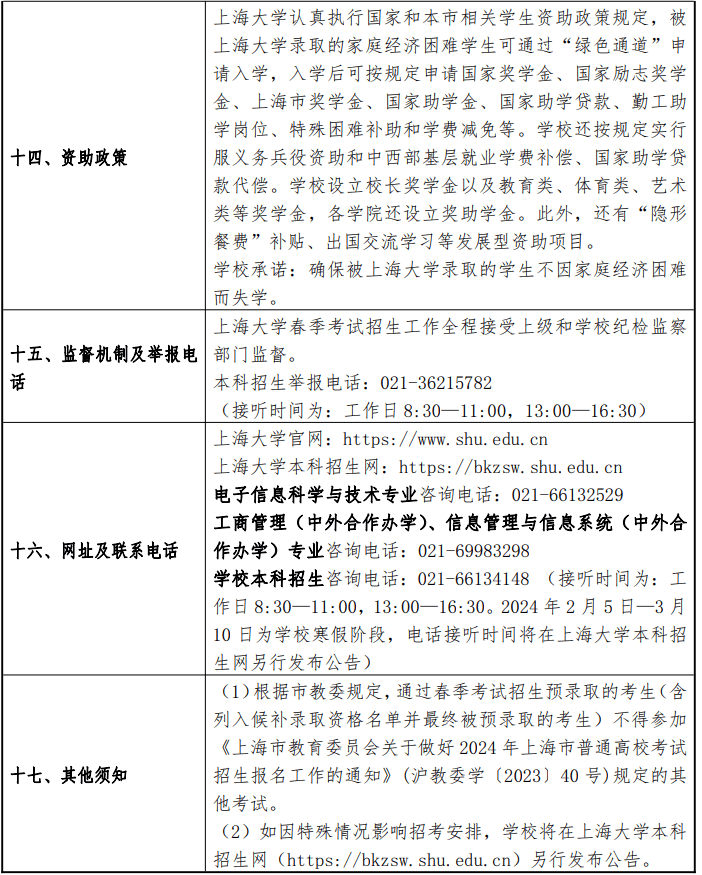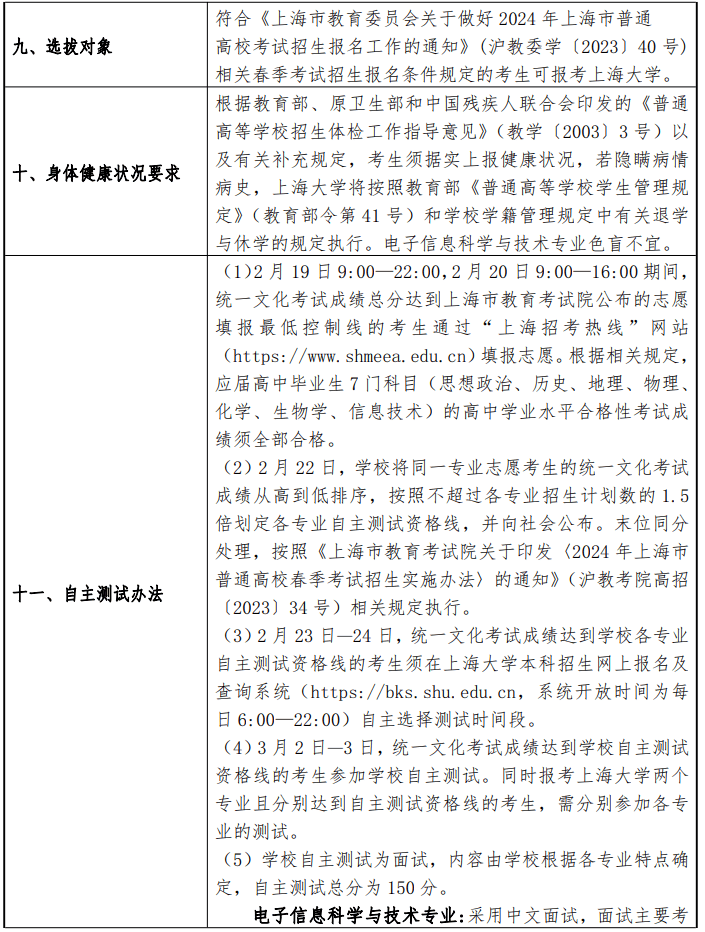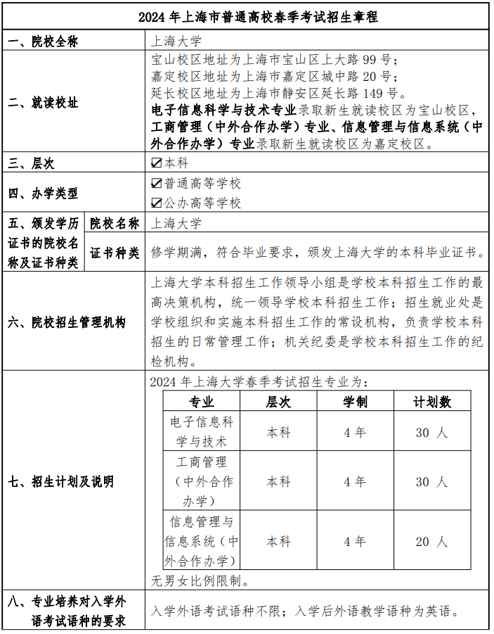 上海大学2024年春季高考招生章程
